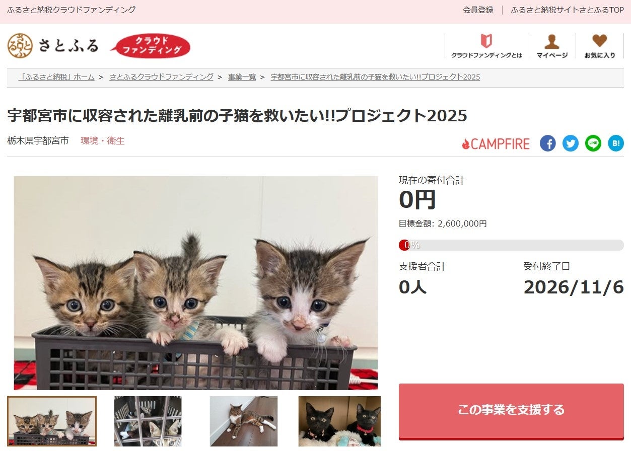 4. 宇都宮市に収容された離乳前の子猫を救いたい!!プロジェクト2025