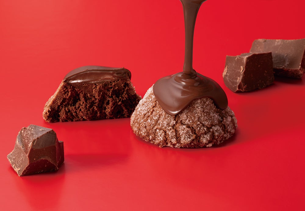濃厚なコクたっぷりのショコラバタークッキーにココアパウダーを練り込んだなめらかなホイップショコラをとじこめ、さらに上からスイートチョコレート入りのコーティングチョコをとろりと流しかけました。クッキーはバター含有率33%を誇るフレーバーバター味『バターステイツクッキー ショコラバター』を使用し、ショコラづくしの一品に仕上げています。今だけ出会えるショコラフォンデュの美味しさをお楽しみください。