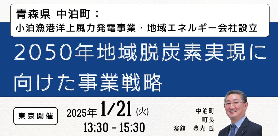 【JPIセミナー】青森県 中泊町「小泊漁港洋上風力発電事業及び地域エネルギー会社設立等 2050年地域脱炭素実現に向けた事業戦略」1月21日(火)<東京開催>