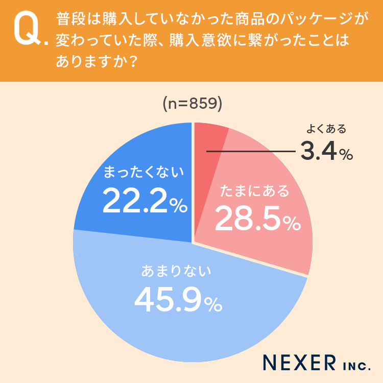 まずは普段は購入していなかった商品のパッケージが変わっていた際、購入意欲に繋がったことはあるか聞いてみました。