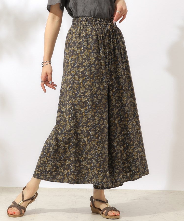 ウエスト部分は着脱しやすいゴム仕様で、ドローストリングコードでウエストサイズを微調整できます。短めの着丈なので低身長さんにもおすすめ。両サイドには、便利なポケット付き。