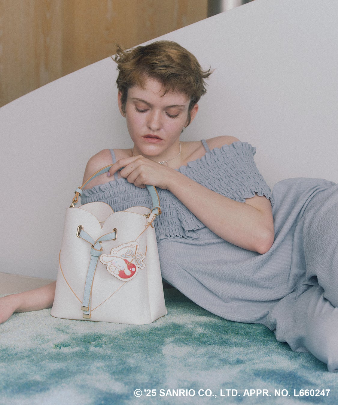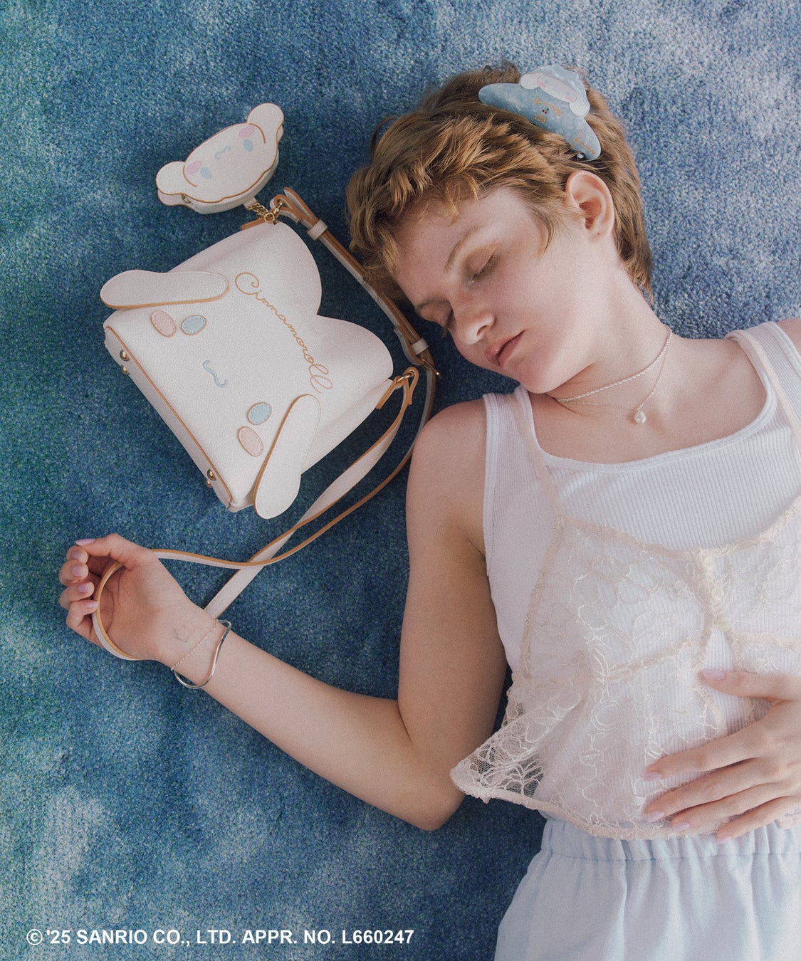 今回のコラボレーションでは、VISの大ヒット商品「ハートカットバッグ」が、ふんわり可愛いシナモロール仕様になってお目見え。サイズ・カラー違いで4型のバッグがラインナップされるほか、