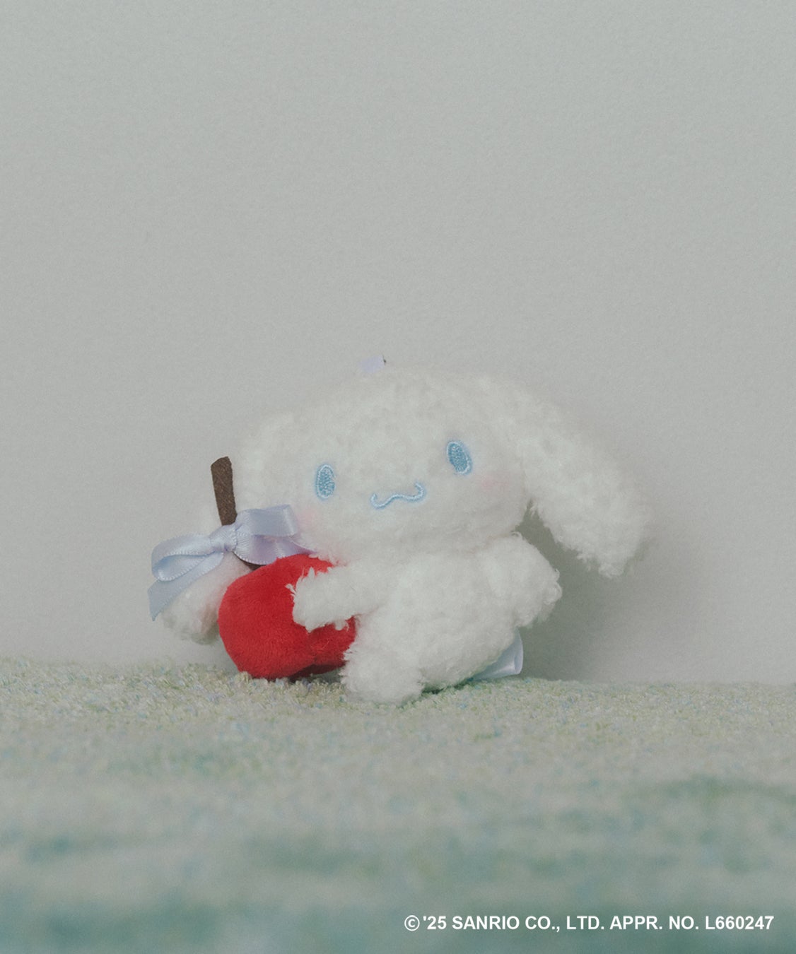 チェリーを抱えて横を向く、ここでしか手に入らないVIS限定のシナモロール。もこもこのプードルファー素材で、手ざわりも抜群。ブルーのリボン付きチェリーがアクセント。バッグに付けるのはもちろん、お部屋に飾っても可愛い座りポーズ仕様です。