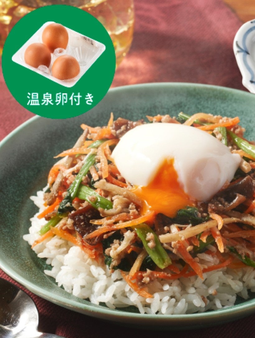 単調な味になりがちな総菜も、レタスや大葉などの野菜や温玉などのフレッシュな食材も別添えしてお届けすることで食べ飽きない