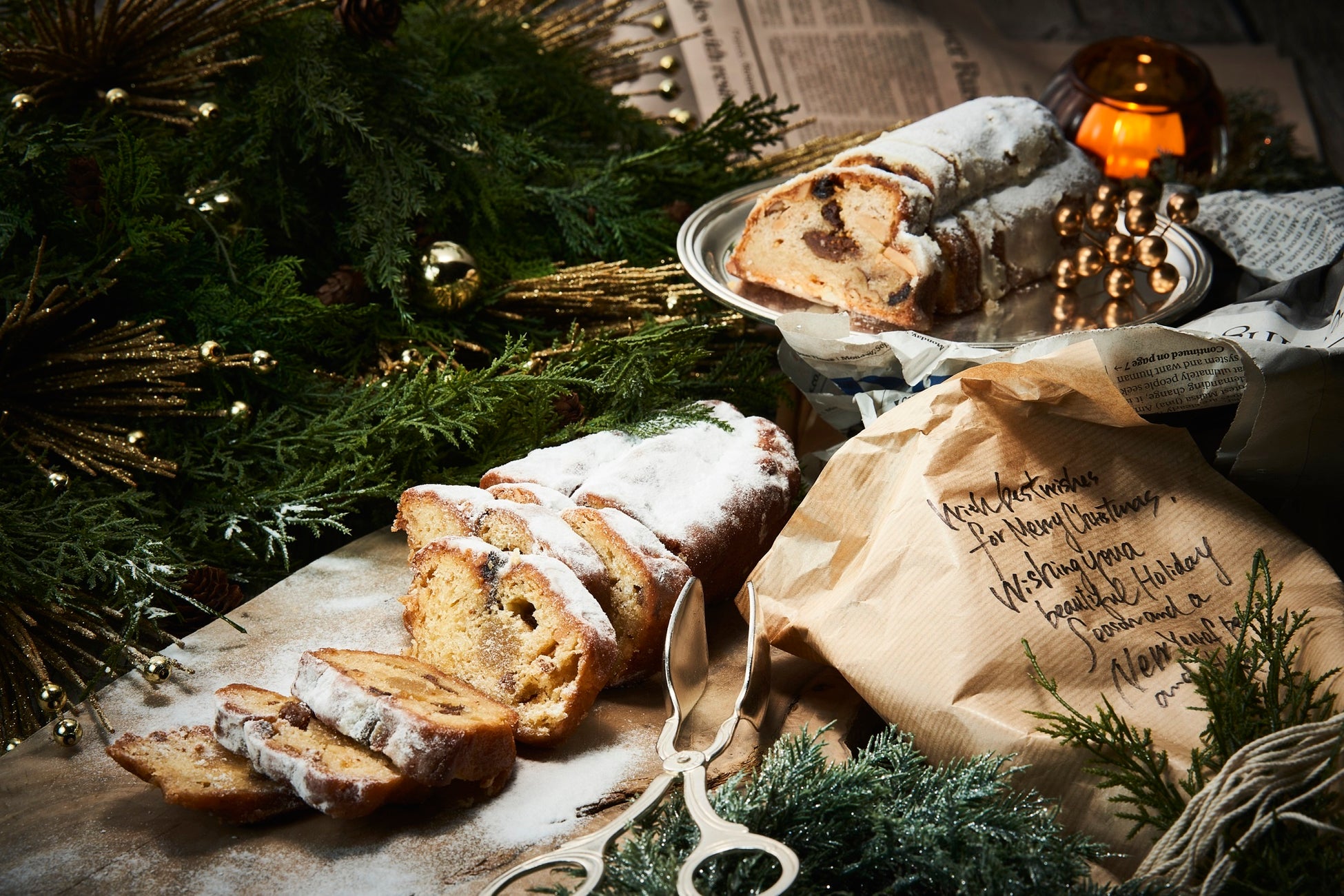 ドイツで長い歴史を持つクリスマスの伝統菓子。上質なバターや風味豊かなドライフルーツ、香ばしいナッツなど、厳選された素材がぎっしり詰まった「シュトーレン」と、香川県産の和三盆糖を使用した特製の生地に、ドライフルーツや木の実をふんだんに練り込んだ「和三盆のシュトーレン」の2種がラインナップ。