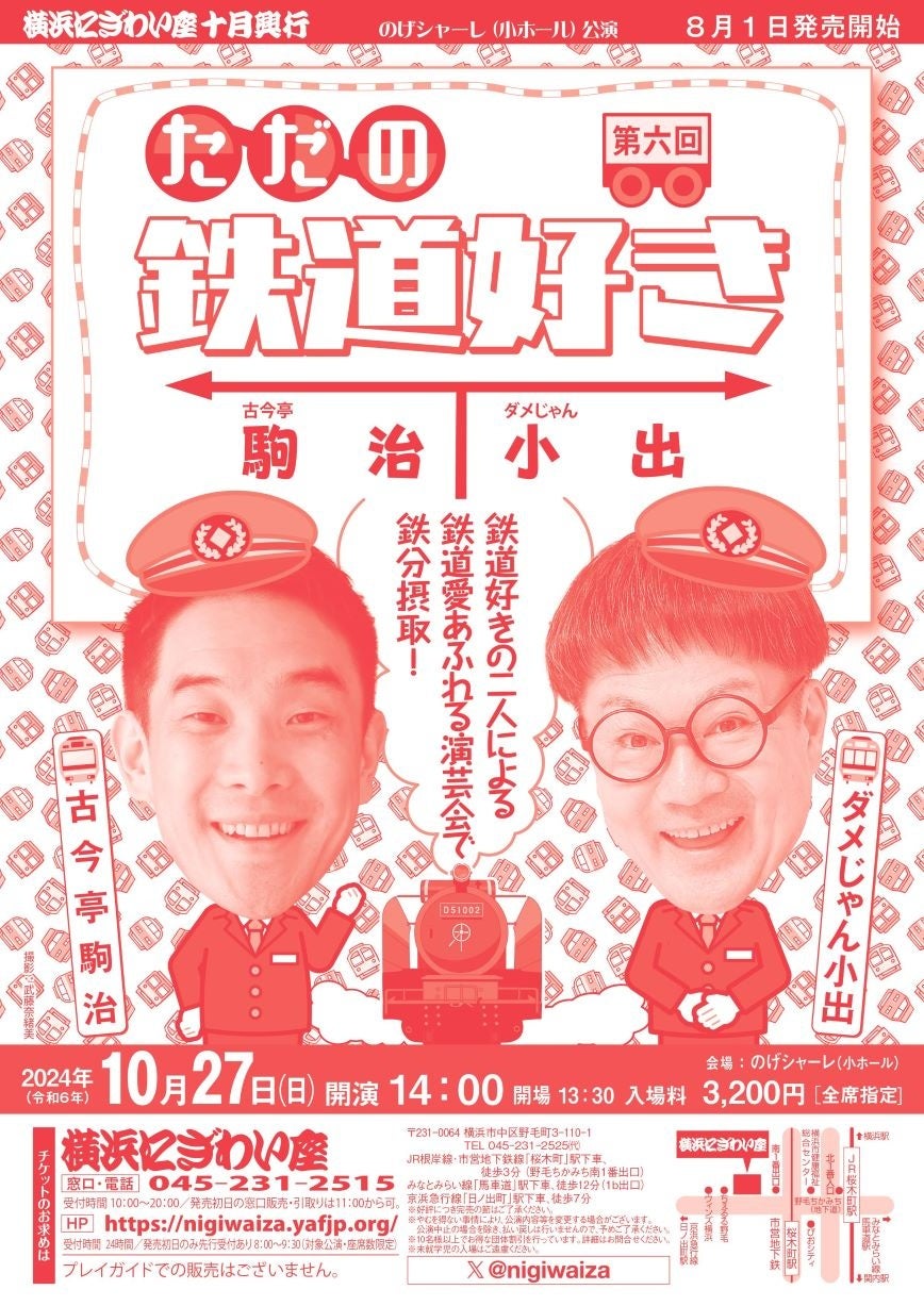 鉄道をこよなく愛する古今亭駒治(落語家)とダメじゃん小出(スタンダップコメディ)の二人が、鉄道愛にあふれる芸と鉄道トークで盛り上がります!