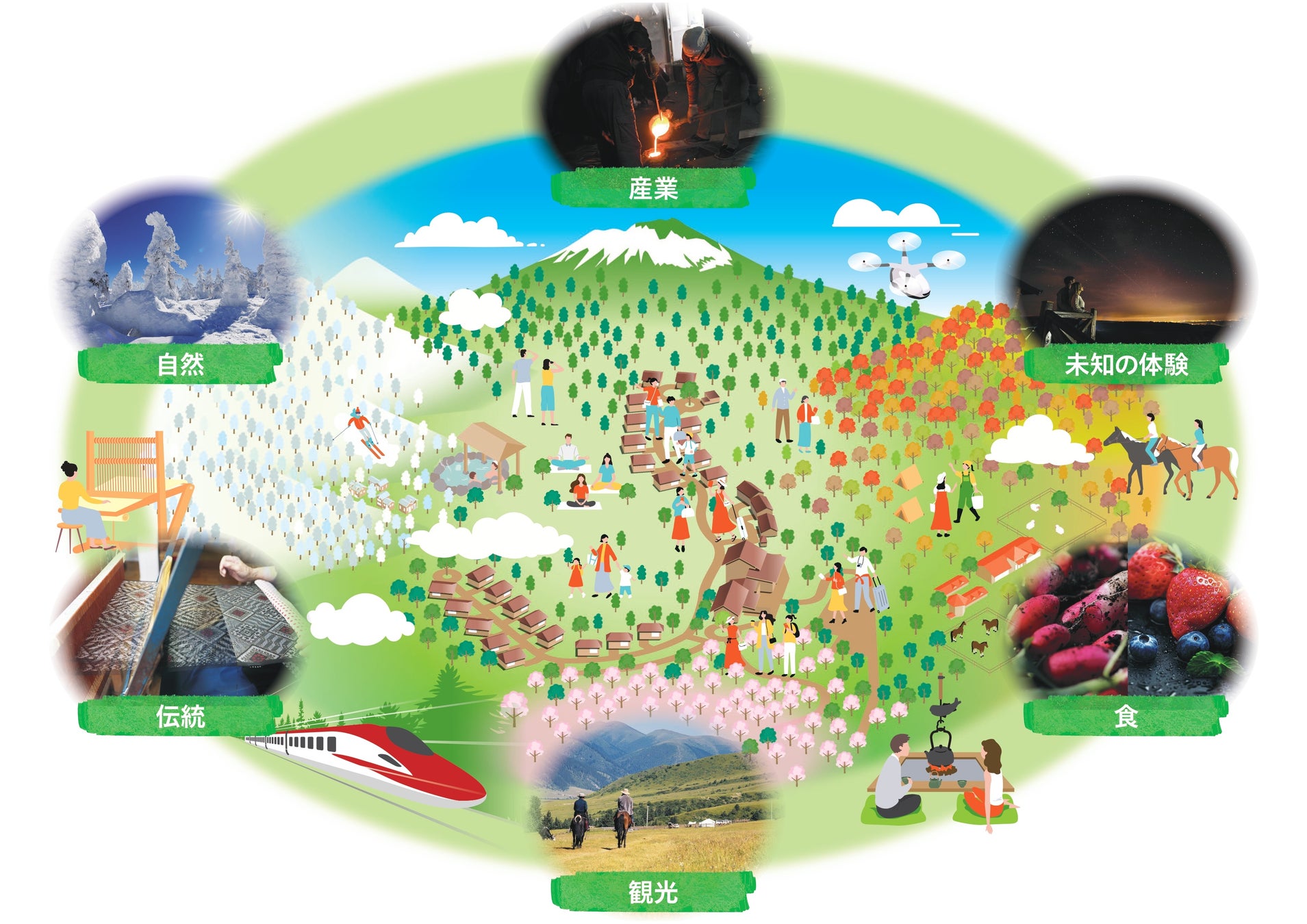JR東日本グループは、中長期ビジネス成長戦略「Beyond the Border」に基づき、地域と一体となった観光振興や地域の拠点化・地域産業との伴走を通じて、地域資源を活かした高付加価値な旅や観光を体験できる「一人ひとりの移動の目的(地)づくり」、「新たな日本の価値創出」に取り組んでいます。