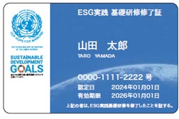 ※企業認定の条件は入社3年目までの社員研修及び、新人研修に、『ESG実践「基礎」研修』を必須プログラムに入れていること。および企業の管理職100人以上もしくは、50%以上が、「アドバンス」コースを修了し合格していること。