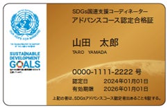 本研修プログラムは、修了もしくは認定を受けた企業に対し、一般社団法人国連支援SDGS促進協会から国連認証を付与することで、これらの評価を可視化させることができます。研修プログラムの内容は、企業の新入社員や若年社員に向けた健康経営の概要を理解する「ESG実践基礎研修」を始め、中間管理職向け「アドバンスコース」や上級管理職向けの「エキスパートコース」といった企業版SDGsをより深く学ぶコースも用意されています。基礎研修を修了した社員には修了証が、それ以上のコースには認定証が一般社団法人国連支援SDGS促進協会より発行され、一定以上の社員が研修を修了することで、企業への認定証が付与されます。