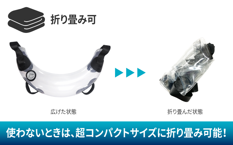 そのため、使わないときは中の水を抜いてしまえば、わずか5cmの隙間にも入る超コンパクトサイズに折り畳み可能!