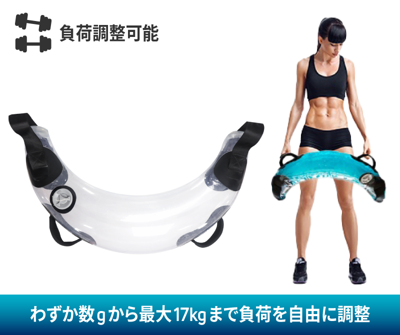 中に入れる水の量を調整すれば、わずか数gから最大17kgまで負荷を自由に調整できます。