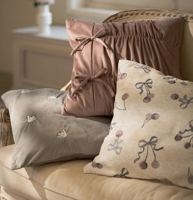 リボンやスワンをモチーフにしたバレエコアスタイルのクッションは、置くだけでお部屋をフェミニンな雰囲気にしてくれます。