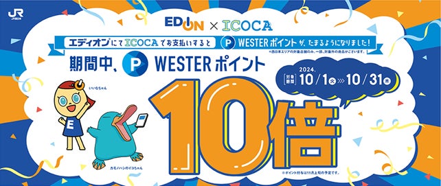 株式会社エディオン(本社:大阪市北区、社長:髙橋浩三、以下エディオン)と西日本旅客鉄道株式会社(本社:大阪市北区、社長:長谷川一明、以下JR西日本)はこの度、エディオン・100満ボルトの対象店舗でのお支払いにICOCAをご利用いただくと、WESTERポイントがたまるサービスを開始することに合意しました。