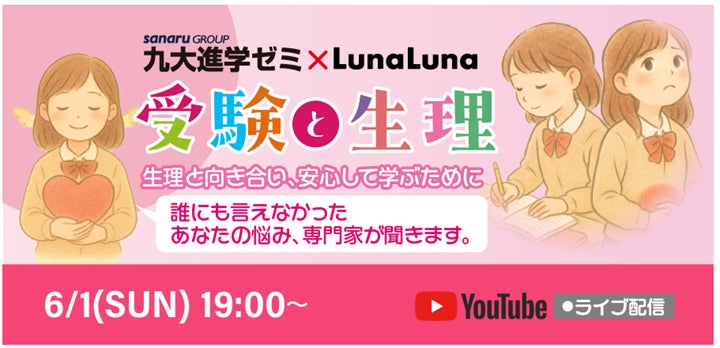 九大進学ゼミ×ルナルナ 6月1日(日)19:00~ YouTube Liveにて無料セミナー開催!『受験と生理』 専門家が解説~生理と向き合い、安心して学ぶために~