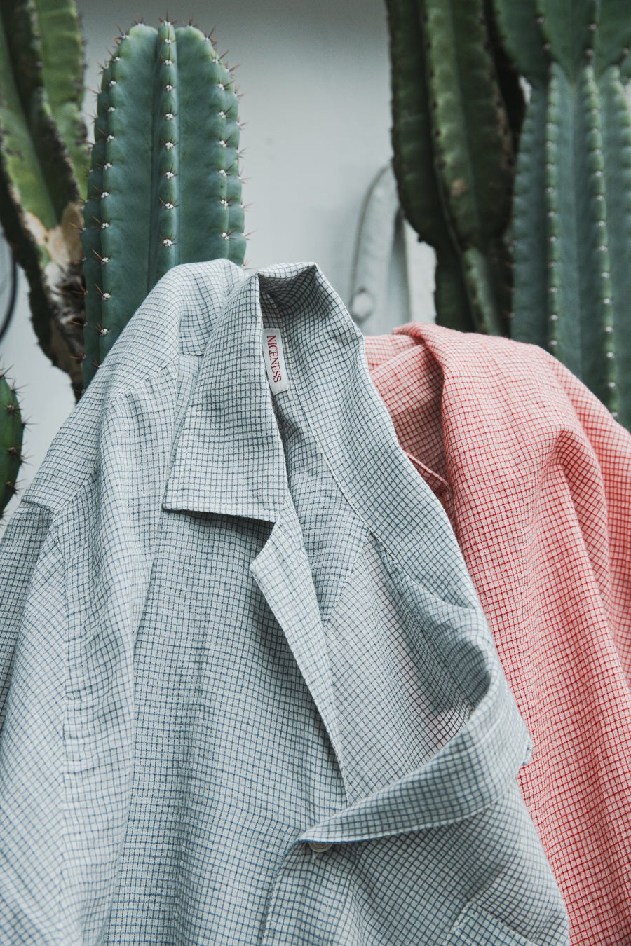 「イイものはイイ=Just good is good」をコンセプトに洋服をデザインしています。そんなNICENESSに、今回は25SSで出ていたカディコットンを使用した独特のリップストップシャツ / Kaushal を半袖シャツとして別注。色と素材も相まって、涼しげな夏のシャツが完成しました。