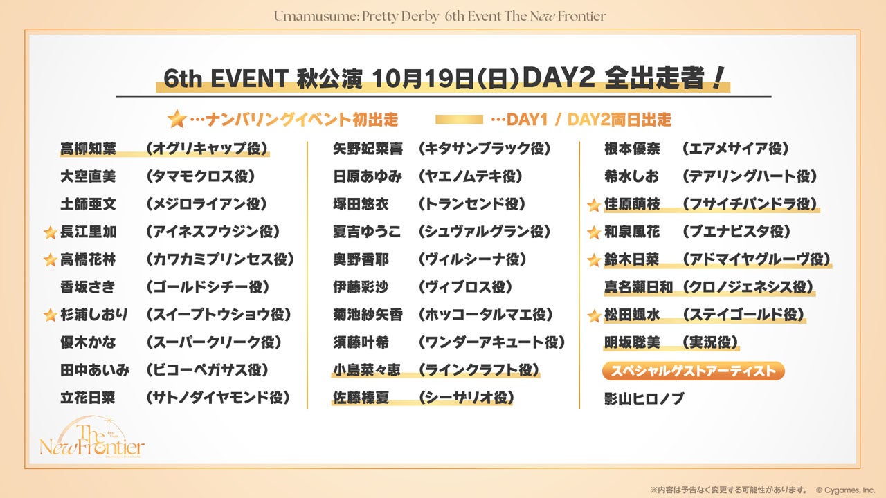 アドマイヤグルーヴ役の鈴木日菜さんが、6th EVENT 秋公演DAY1・DAY2両日に出走することが決定し、今回の発表で出走する全てのキャストの情報が公開となりました。両日合わせて40名以上のキャストが出走し、秋公演を盛り上げます。