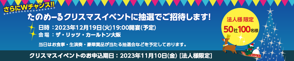 ザ・リッツ・カールトン大阪で開催するスペシャルイベントに、抽選で50社100名様をご招待します。当日はお食事・生演奏・豪華景品が当たる抽選会などを予定しています。参加ご希望の際は、あわせてお申込みください。