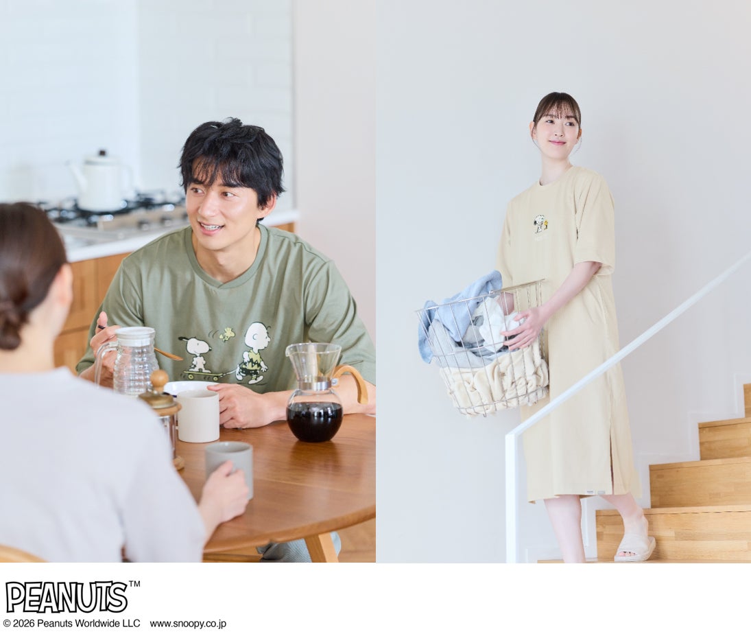 この度販売を開始した「AOKI&TAKE CARE WITH PEANUTSコラボRECOVERY CARE+®5分袖7分丈パンツ/半袖チュニック」は、自宅でのリラックスタイムがより楽しくなる可愛らしいデザインの疲労回復ウェアです。