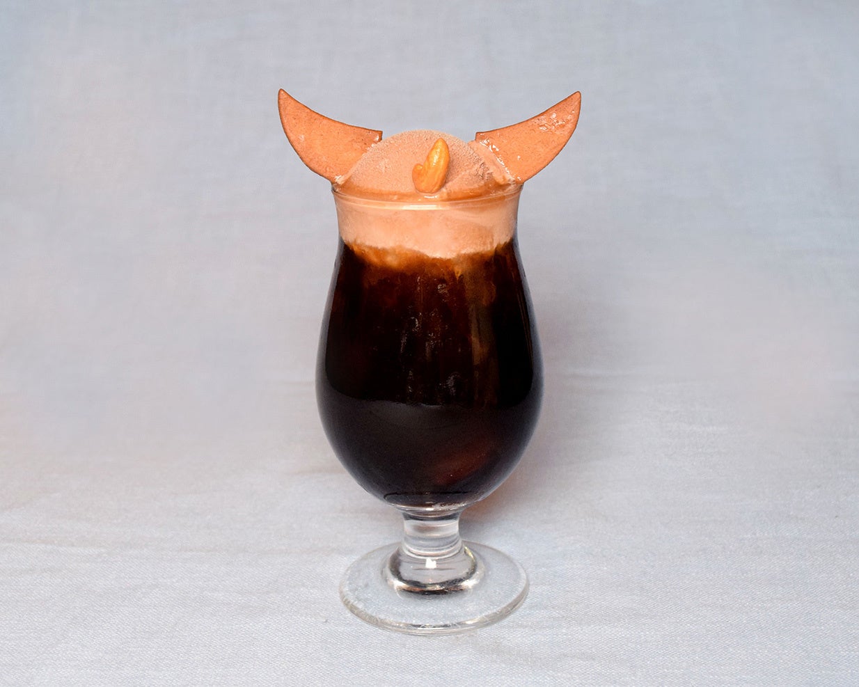 祭りの主役ゴモラがフロートドリンクで降臨!彼を長い眠りから呼び戻すために作られた、甘さとほろ苦さを楽しむフロートカクテルです。