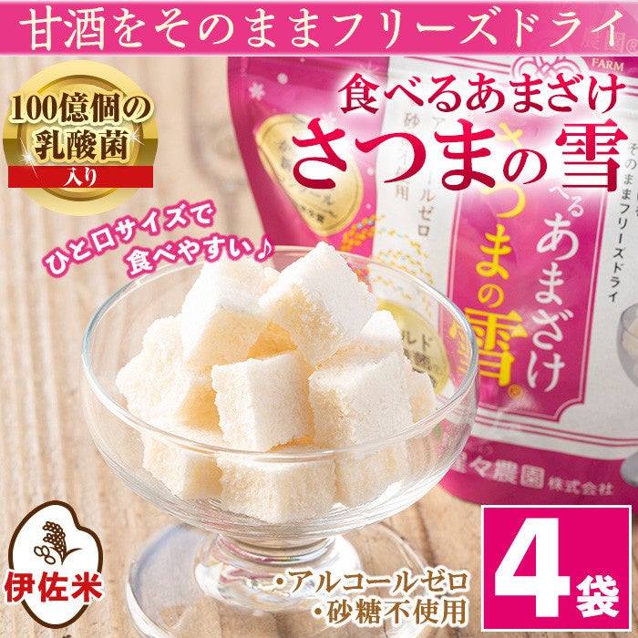 自社製造にこだわったあまざけを、独自のフリーズドライ製法でそのままサクサクと食べられるようにしました。無着色・無香料で、保存料や砂糖も不使用のあまざけに乳酸菌を加えています。