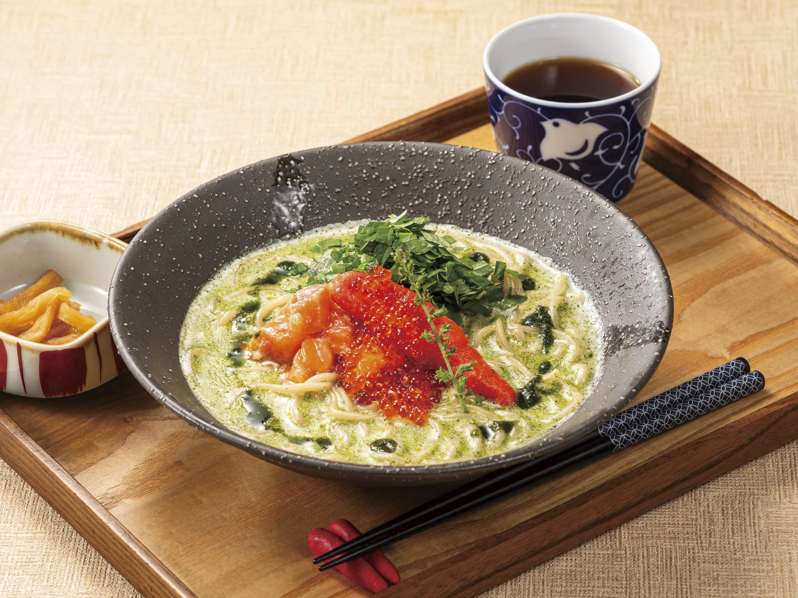 『サーモンといくらのジェノベーゼたらこクリーム』は、主役のたらこ、そしてサーモンといくらを贅沢にトッピング。爽やかな大葉の香りがアクセントを加えます。