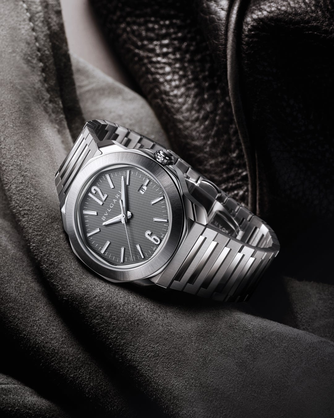 カジュアルからエレガントなシーンまで、さまざまな場面で活躍する「オクト ローマ」の新モデル。多用性のある魅力的でシックなスタイルにより、ビジネスやレジャー、フォーマルな場においても「オクト ローマ」はその非の打ち所がないエレガンスにより、ワードローブをいっそう引き立てます。特徴的なカジュアルシックの組み合わせが、ブルガリの比類なきセンスと型にはまらない強いスタイル性を物語っているのです。