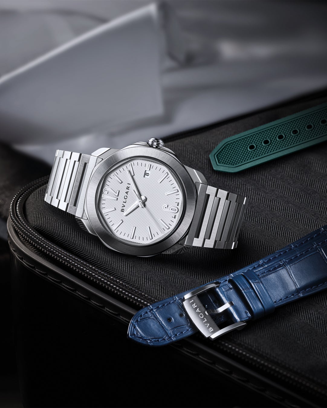必要ないシステムにより、はめ込むだけで瞬時にストラップ交換が可能です。ステンレススティールブレスレットとラバーストラップの2つのリストバンドが付属されいつでもスタイルが変えられます。さらに幅広いカラーが楽しめるラバーストラップとアリゲーターレザーのストラップも別売で展開されます。多様な素材と色合いに「オクト ローマ」の哲学が宿り、それぞれのスタイルや個性を映し出す自由なスタイリングとカスタマイズが可能なタイムピース、それが新しい「オクト ローマ」です。