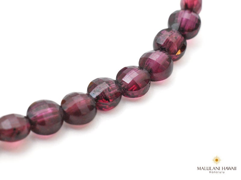 深い赤が印象的なガーネットは、キラキラと光を放つ繊細なコインカットをセレクト。