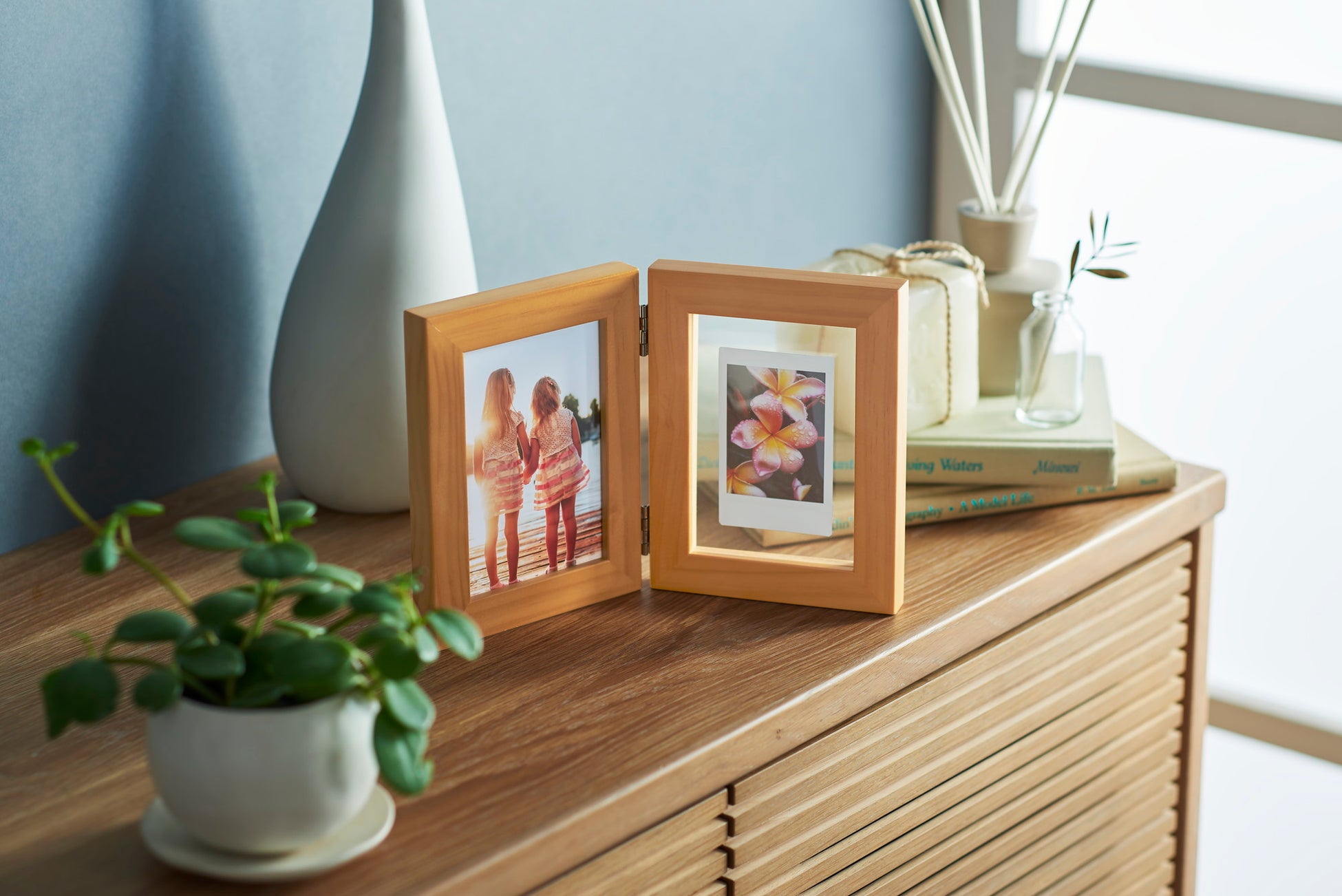 ナチュラルな質感がオシャレな2面タイプのフォトフレーム。