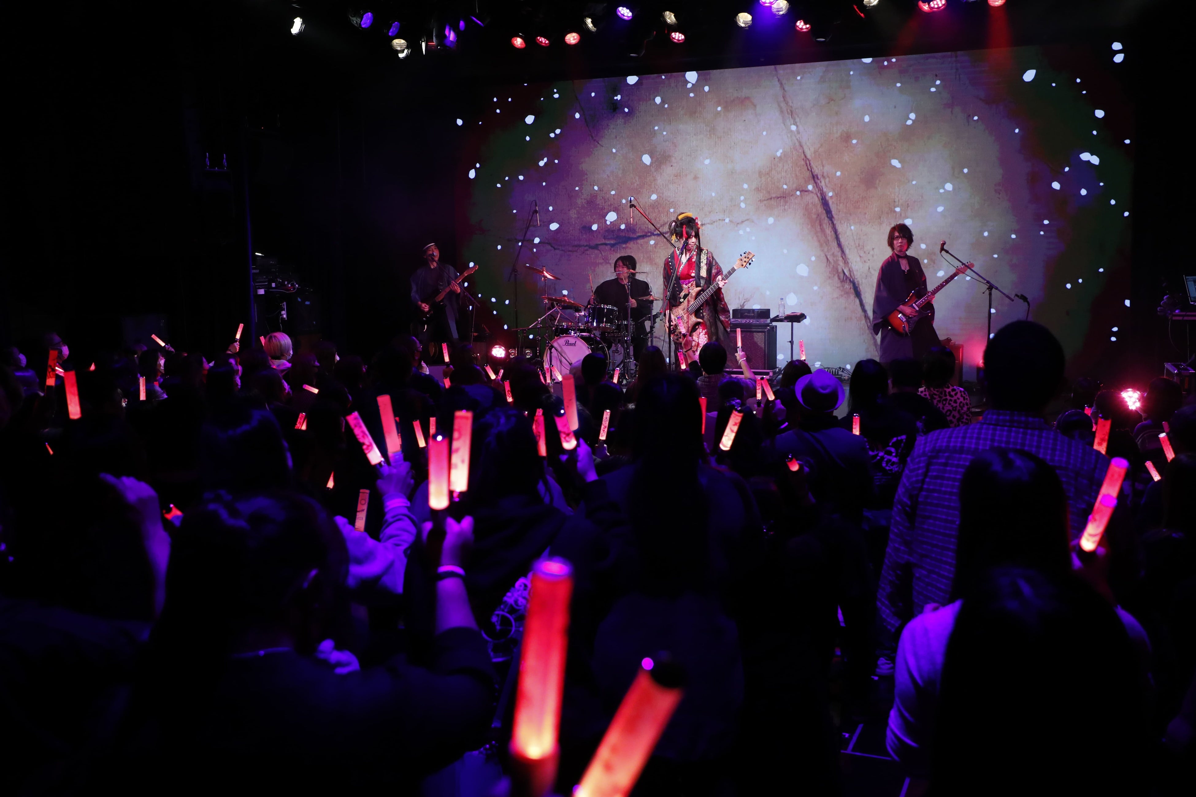 本編中盤では、敢えて亜沙がベースを置きハンドマイクを手にしてのアクティヴなパフォーマンスで観衆たちを惹きつけた「Moonwalker -月の踊り手-」や、亜沙がデスボを駆使しながらアグレッシヴに歌ってみせた「幻想リアクション」で場を一旦は派手に盛り上げつつ、このあとには一転して亜沙がかつてバイトをしていた頃の実体験を基に作ったという「労働者のバラッド」と、フォーキーで朴訥とした普遍性の強い調べが聴く者たちの心に沁みいっていくことになった「just close to you」では、いわゆるアコースティックなかたちで楽曲たちがプレイされることによって、今回のライブはより感慨深さの色合いを深めていくことになったのだった。