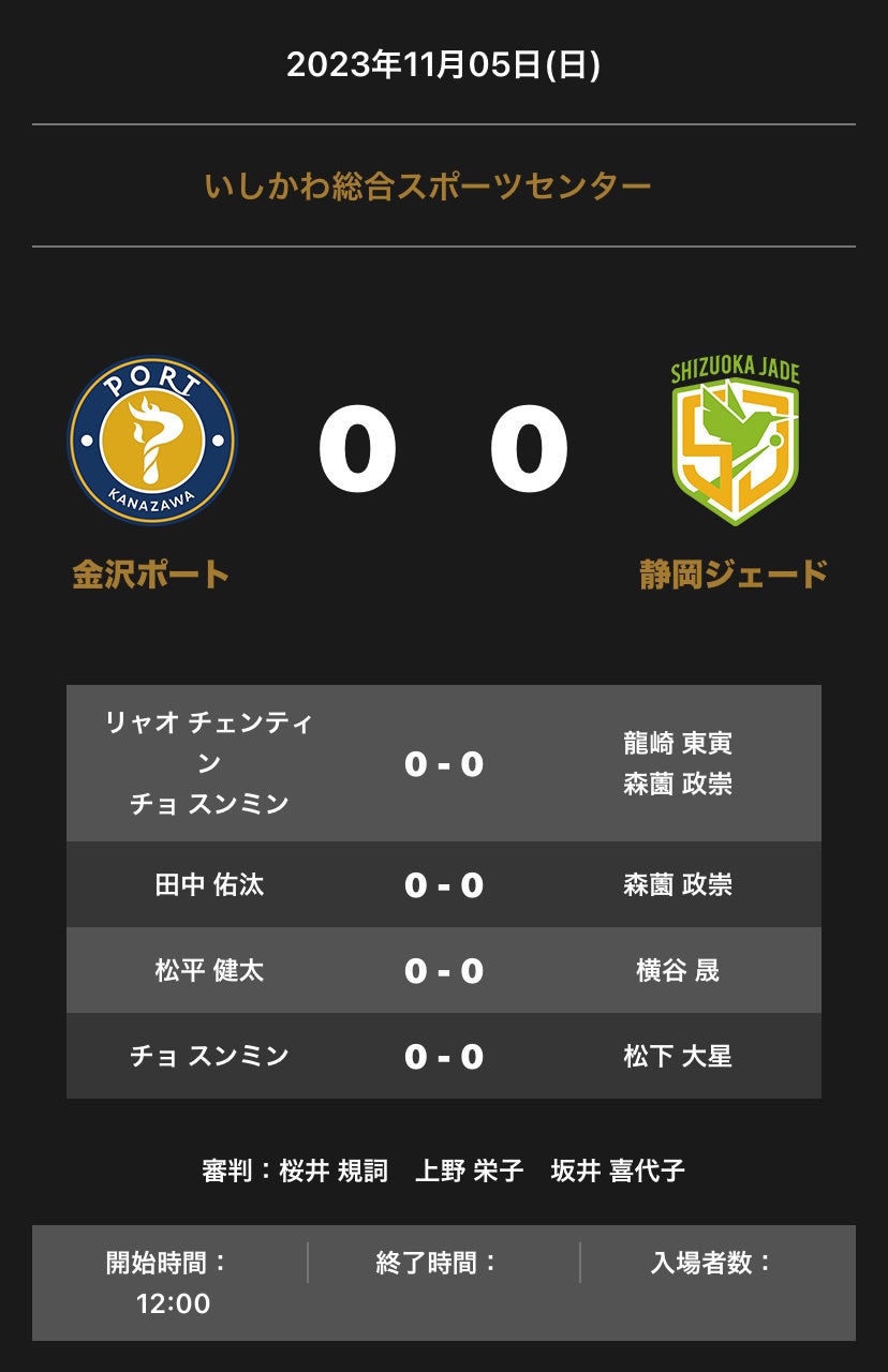 ノジマTリーグ2023-2024シーズン公式戦 11月5日(日) 金沢ポート vs 静岡ジェード 対戦オーダーを発表します。