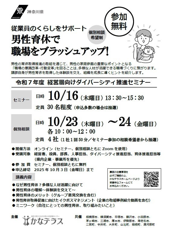 【10月3日(金)まで参加者募集中】経営層向けダイバーシティ推進セミナー ~男性育休で職場をブラッシュアップ!~ <無料>