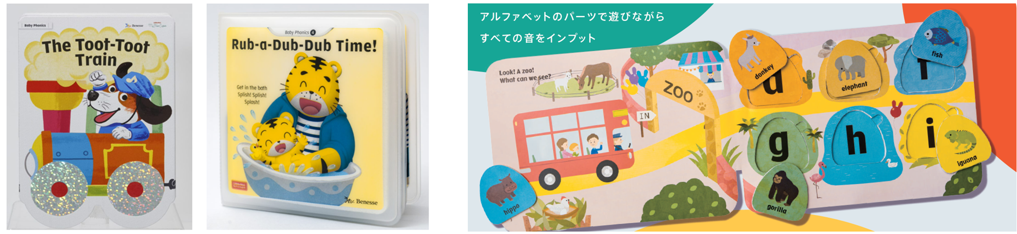 ・生後10か月頃まで聞き分けられるとされる日本語にはない音(l/r, k/gなど)を聞き取る耳の素地をつくるカリキュラム設計(ベネッセオリジナルの「Baby Phonics」を採用)