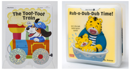 ・0歳児が認識しやすい色・形・遊び、発達段階に合わせた仕掛けが入った絵本。
