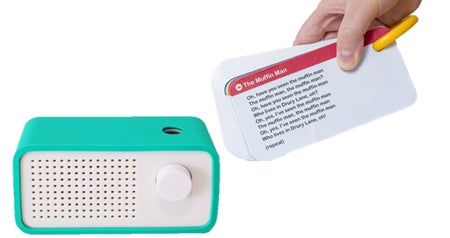 ・歌詞カード(②)や絵本(➂・④)をラジオにかざすだけで、読み上げ再生してくれるので、英語絵本の読み聞かせも。