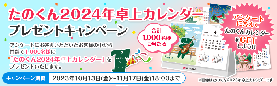 【プレゼントキャンペーン】「たのくん2024年卓上カレンダープレゼントキャンペーン」実施!!大塚商会のオフィス通販サービス「たのめーる」