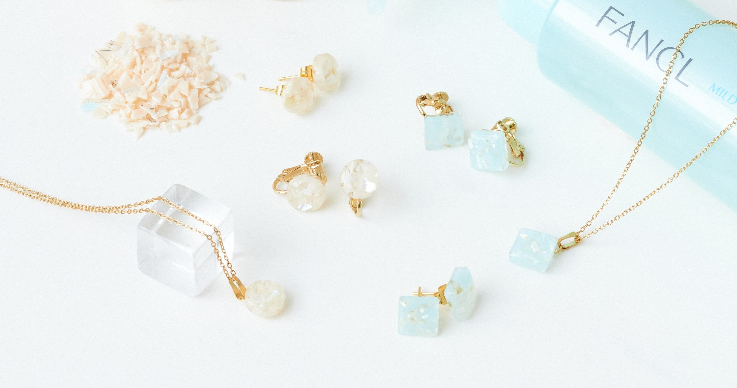 化粧品容器から生まれたイヤリング / 化粧品容器から生まれたピアス/化粧品容器から生まれたペンダント