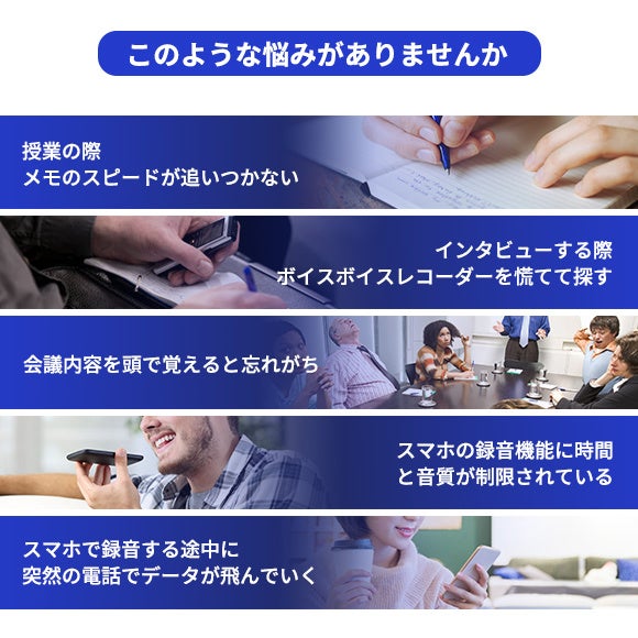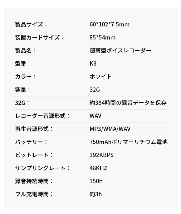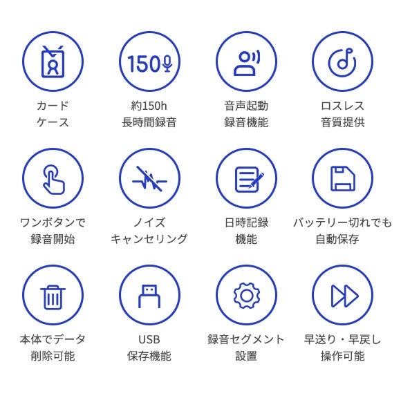 150h長時間録音|音声起動|超薄型|ロスレス音質|ノイズキャンセリング