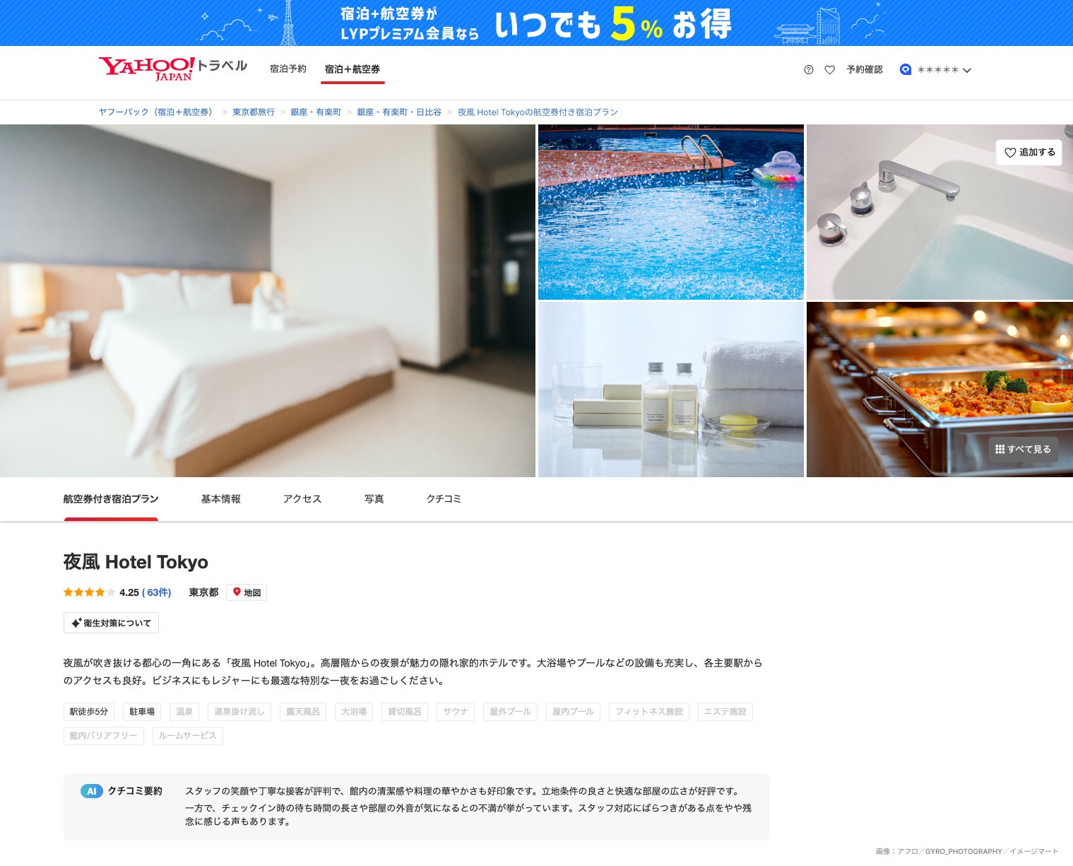 LINEヤフー株式会社(以下、LINEヤフー)が運営する「Yahoo!トラベル」の「ヤフーパック(宿泊+航空券)」では、一部の宿泊施設の概要欄に、施設のクチコミを生成AIによって要約した文章を表示する機能(以下、本機能)の提供を開始しました。今後、本機能の対応施設を拡充していく予定です。