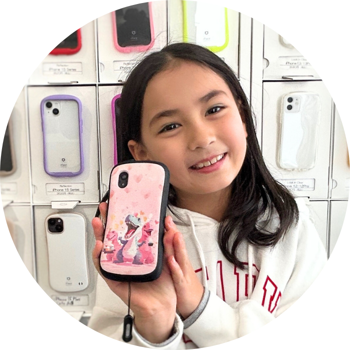 自分で作ったオリジナルのキャラクターをケースにしてもらったよ。いつでも一緒にいられるようになって、とても嬉しい!