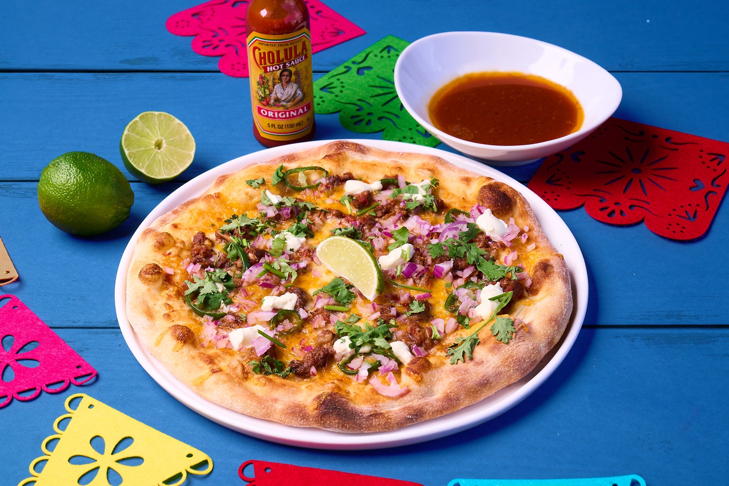 「ビリアピザ」は、メキシコの伝統料理「ビリア」をアレンジ、じっくり煮込んだ牛肉をメイントッピングに香ばしく焼き上げたメキシコ風ピザ。スパイスの香り、とろけるチーズの濃厚な味わいに、レッドオニオンとサワークリームがアクセント。食欲そそる一枚に仕上げました。
