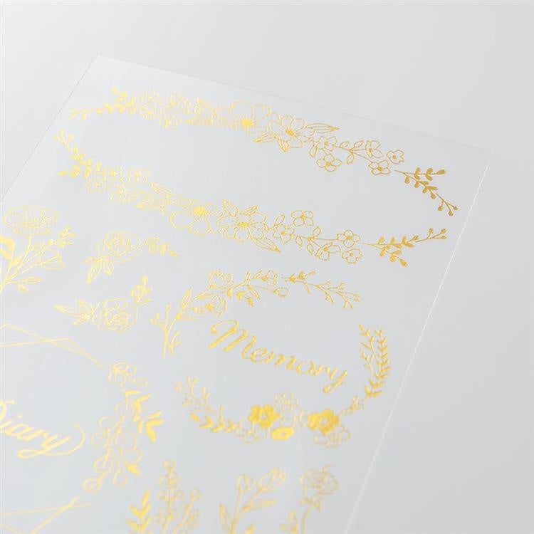 こするだけで簡単に金箔モチーフの転写ができるシール。元から箔押しされているような自然な仕上がり。
