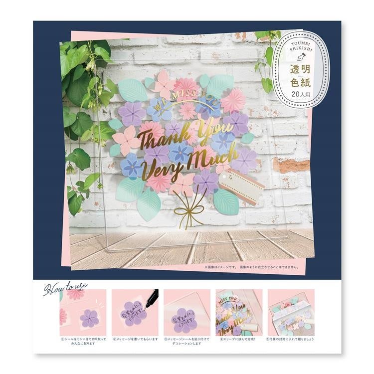 余白が気になりにくい透明なアクリルボードの色紙。花やお菓子モチーフのメッセージシールを貼って花束やリース風に飾れます。※2月上旬入荷予定