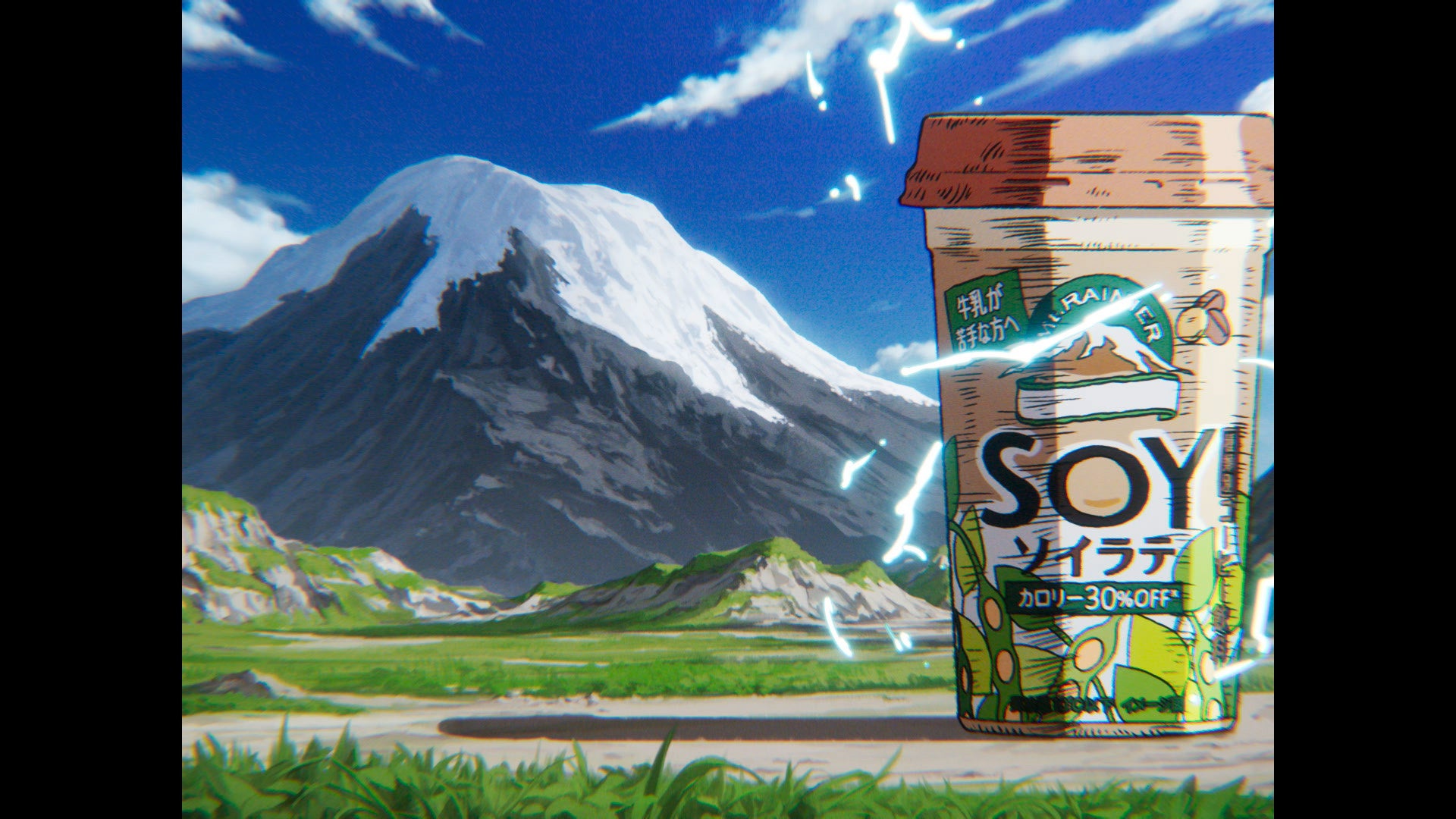 闘いの始まりを予感させる荒野で、強烈なオーラを放つ「ソイラテ」。大地が割れ、砂塵が舞い上がり、すさまじいオーラがすべてを吹き飛ばすと、新パッケージの「ソイラテ」が現れる!