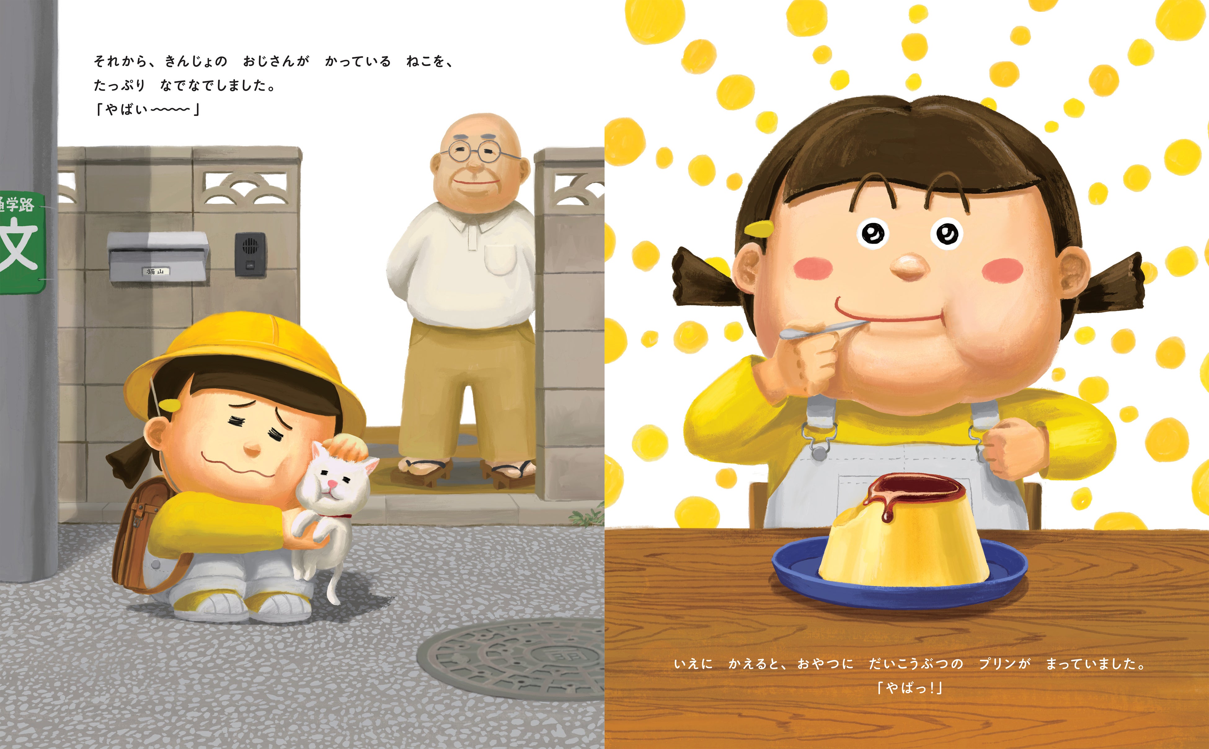主人公・ななちゃんの口癖は、たのしいときも、おいしいときも、なんでもかんでも「やばい!」ばかり。そんなある日、ママが言いました。「やばい、ばっかり言ってると、やばいやばいおばけが出てきちゃうわよ〜」その時です。ななちゃんの頭の上に、にやりと笑う黒くて丸いやつが現れたのです……。