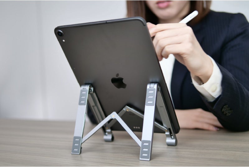 重さのあるタブレットも底辺の支えがあるため安定して置くことができます。