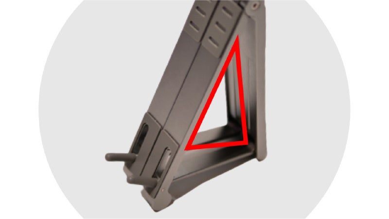 バランスの取りやすい三角形の状態で支えられるので重みで角度が広がっていくということもありません。