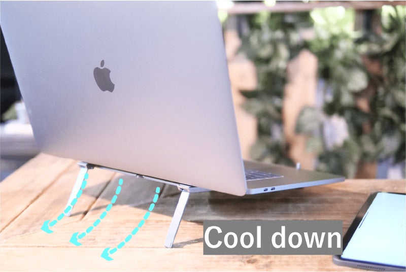 このスタンドはアルミ製なので導熱性が高く、中空設計なのでノートパソコンの底面の通気性が向上します。