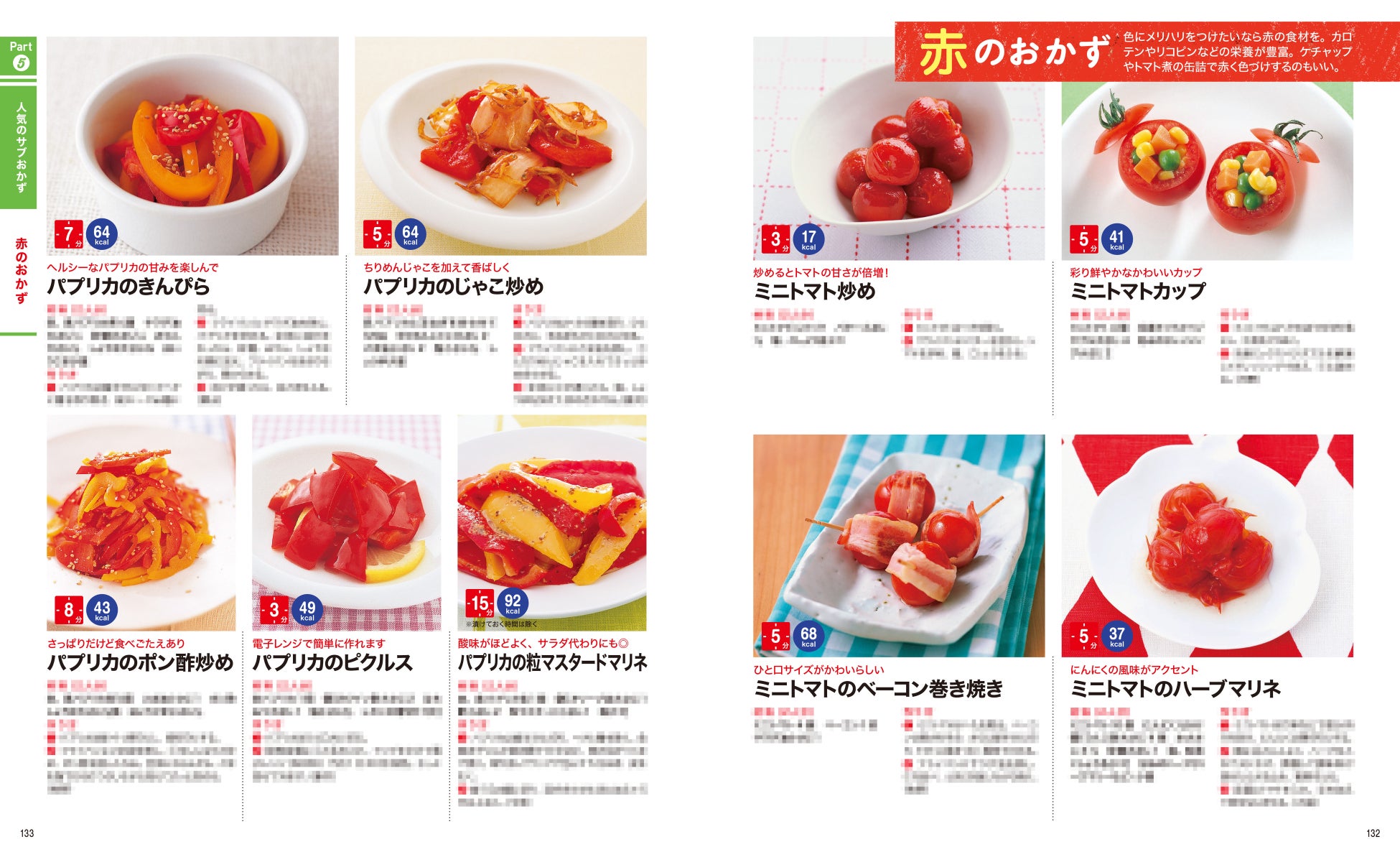Part5ではあと1品に便利な人気のサブおかずを色別に紹介します。赤・黄・緑など色味で選べます。