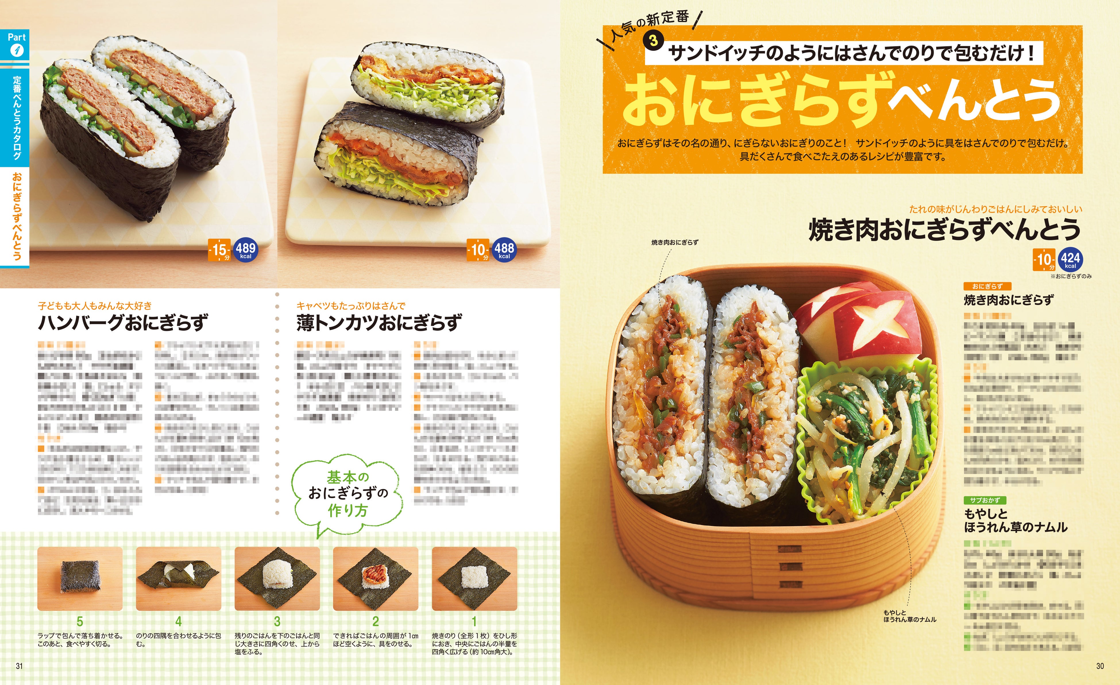 さらにどんぶりをおべんとうにした「のっけべんとう」、ごはんをメインにした「アレンジごはんべんとう」、サンドウィッチのようにはさんでのりで包むだけの「おにぎらずべんとう」、「スープジャーべんとう」、「めんべんとう」、「パンべんとう」など新しい定番スタイルも紹介します。